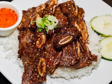 Grilled marinated beef short-ribs, topped with scallion oil & fish sauce on the side.